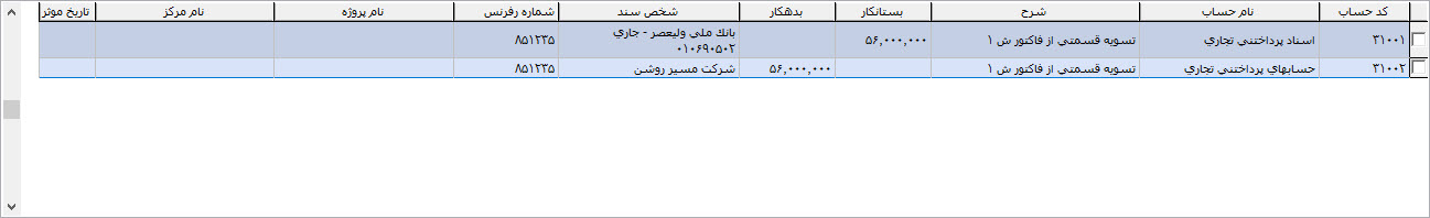 نكته : براي ادامه عمليات بر روي اسنادي كه در سال هاي مالي قبل ثبت شده اند نياز به رجوع به آن سال مالي نمي باشد و ميتوان در سال مالي جاري پس از فيلتر، آن اسناد را رويت و سپس اقدام به ثبت و اصلاح اسناد نماييد.