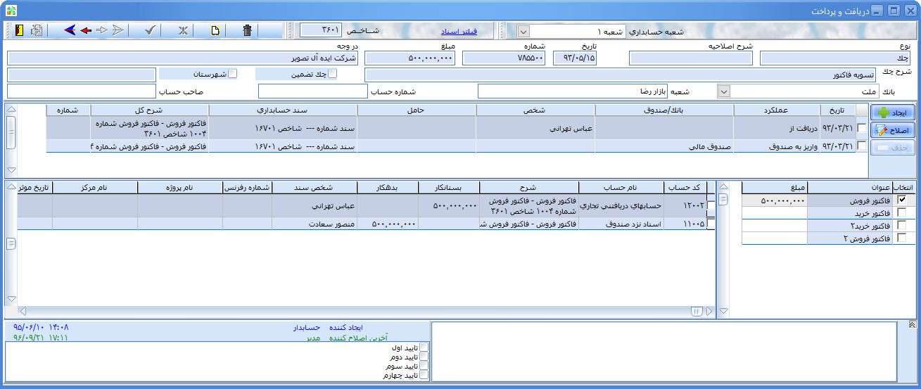 شخص: در اين حوزه شخص دريافت كننده يا پرداخت كننده سند انتخاب ميشود.