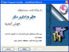 در اين مرحله پنجره "نصب سيستم هاي مالي و اداري بكر" نمايش و نصب اجزاي انتخاب شده برنامه ها آغاز مي شود. بديهي است كه نصب برنامه ها زماني را به خود اختصاص خواهد داد.