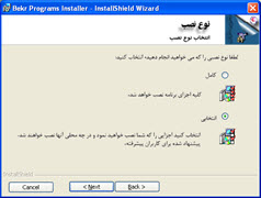 در اين مرحله، روش و نوع نصب برنامه ها، توسط كاربر انتخاب مي گردد. به روشهاي زير ميتوان برنامه ها را نصب نمود:
