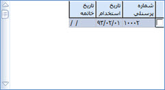 ثبت تاريخ استخدام و ترك كار پرسنل در اين بخش انجام مي پذيرد. براي وارد نمودن اطلاعات، پس از كليك نمودن بر روي نام پرسنل مورد نظر و با استفاده از كليدهايي كه در اين بخش تعبيه شده اند مي توان اطلاعات را ايجاد، اصلاح و يا حذف نمود.