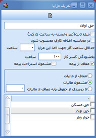 اين پنجره به منظور تعريف عناوين و خصوصيات انواع مزاياي مورد نظر، كه به كاركنان سازمان تخصيص داده مي شود،
