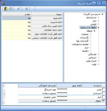 بديهي است در صورت عدم داشتن اين مجوز، كاربر نميتواند سال مالي پيش فرض برنامه را تغيير دهد.