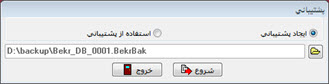 اين پنجره به منظور ايجاد و يا استفاده از نسخه پشتيبان از بانك اطلاعاتي برنامه اختصاص دارد.