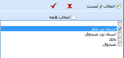 - اين بخش معمولاٌ زماني مورد استفاده قرار مي گيرد كه قرار است اطلاعاتي انتخاب گردد كه هيچ گونه وجه مشتركي به لحاظ ارقام و يا شرح، با يكديگر ندارند. براي انجام اين كار، ميبايست گزينه "انتخاب از ليست" را انتخاب نمود؛ پس از انتخاب گزينه مذكور، ليست كليه اطلاعات حوزه مورد نظر در كادري بزرگي كه در پايين پنجره، تعبيه شده است نمايش ميابد. براي انتخاب اطلاعات مورد نظر، كافيست تا آنها را انتخاب نموده و فيلتر را اجرا نمود..