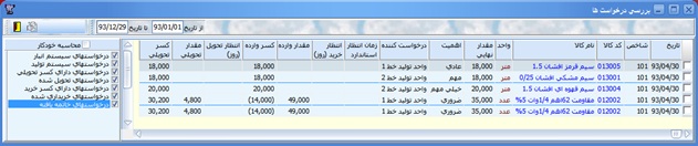 با استفاده از اين گزارش مي توان درخواستهاي صادر شده از قسمتهاي مختلف سازمان، بر اساس محدوده تاريخي و نوع درخواست صادر شده را پيگيري و با استفاده از ابزار فيلتر توسط راست كليك كردن گزراشات متنوعي از نظر اهميت، علت درخواست، زمان انتظار خريد و ... تهيه و چاپ نمود.